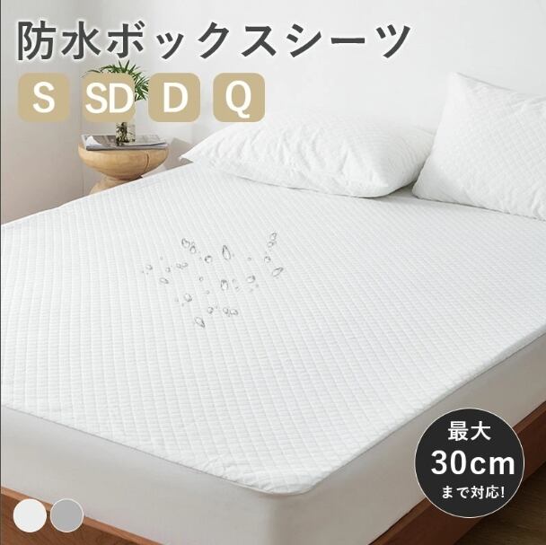 ボックスシーツ 防水シーツ シングル セミダブル ダブル クイーン 柔らかい 抗菌防臭 吸汗速乾 通気性 肌に優しい 高密度生地 全周ゴム マチ幅30cm 一体型ボックスシーツ おしゃれ 北欧風 BOXシーツ 丸洗い かわいい グレー ホワイト 新生活応援suncl0002