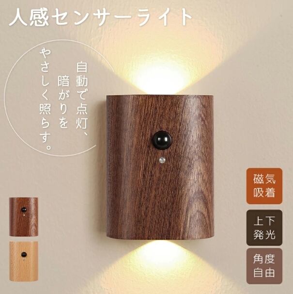 人感センサーライト 2個セット ウォールライト 室内 玄関 木製