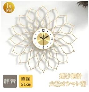 掛け時計 花 おしゃれ 造形 大きい 51cm 大きサイズ オシャレ北欧 シンプル モダン インテリア 花 見やすい 静音 時計 壁時計 壁掛け時計 新築祝い 結婚祝い お家の飾り 非電波 かわいい 大輪の花のようなフォルム 壁掛けフック付き 送料無料 一年保証 btsn77